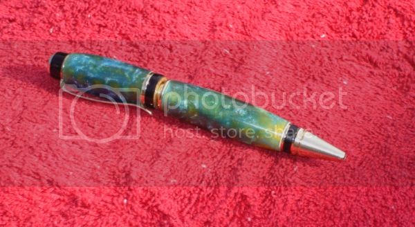 At any rate, here is a shot of that pen and of another one. Theo other one was a dismal shade of green and blue...on the outside. However once it was turned, it looked beautiful!