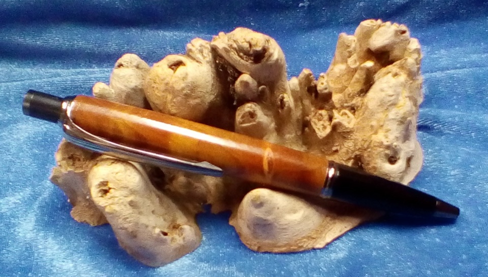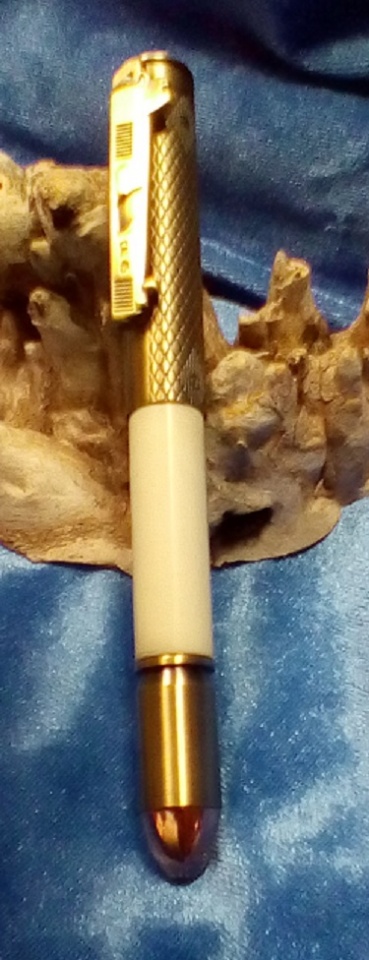 Two pens I was able to finish today after everything else was done. 1st 45acp with faux ivory 2nd a Sierra style click pen with mulberry wood BLO/CA finish Thanks C&C welcome William