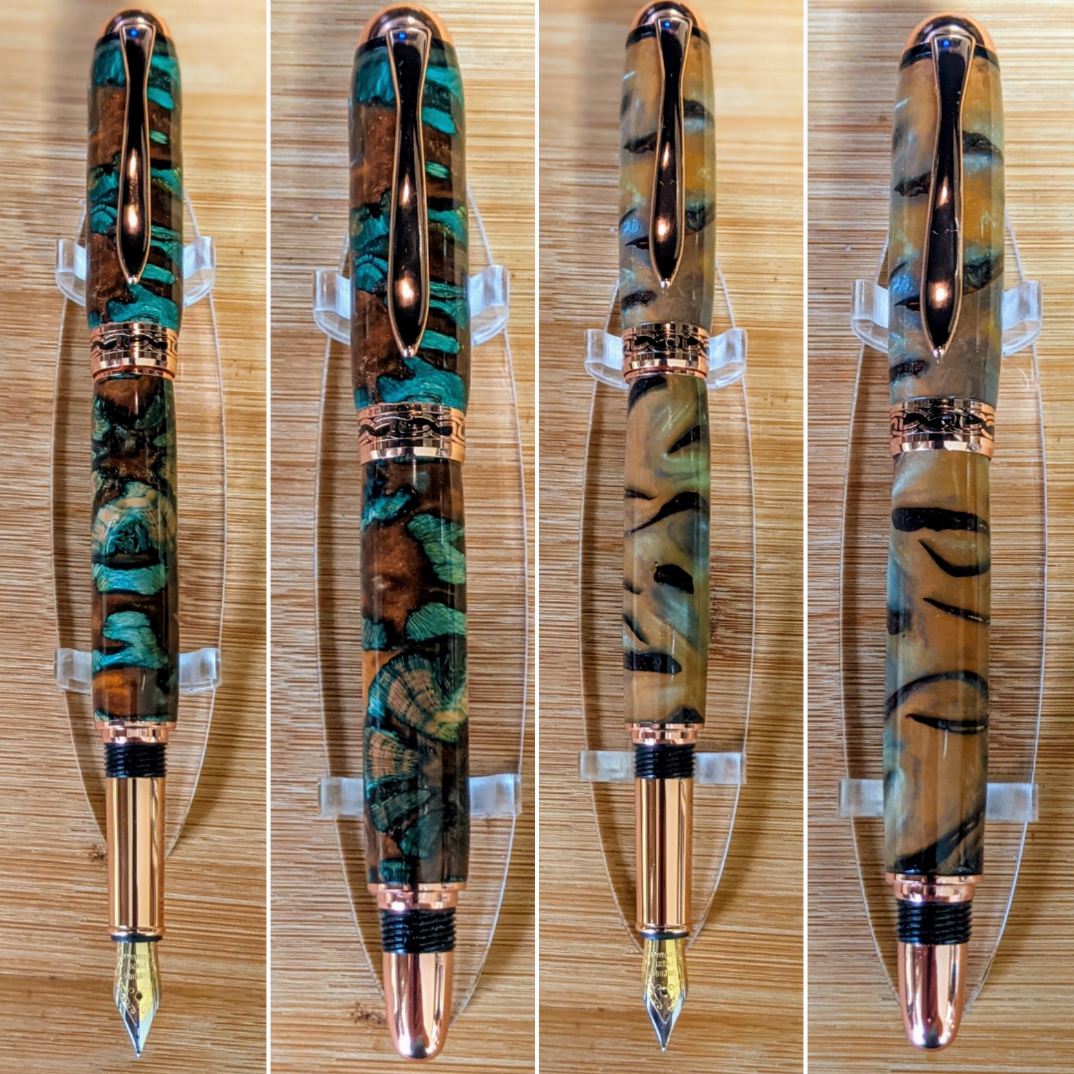 egnald Member Joined Jun 9, 2017 Messages 4,528 Location Columbus, Nebraska, USA Oct 12, 2021 #5 Your blanks and choice of kits made very attractive pens! - Dave