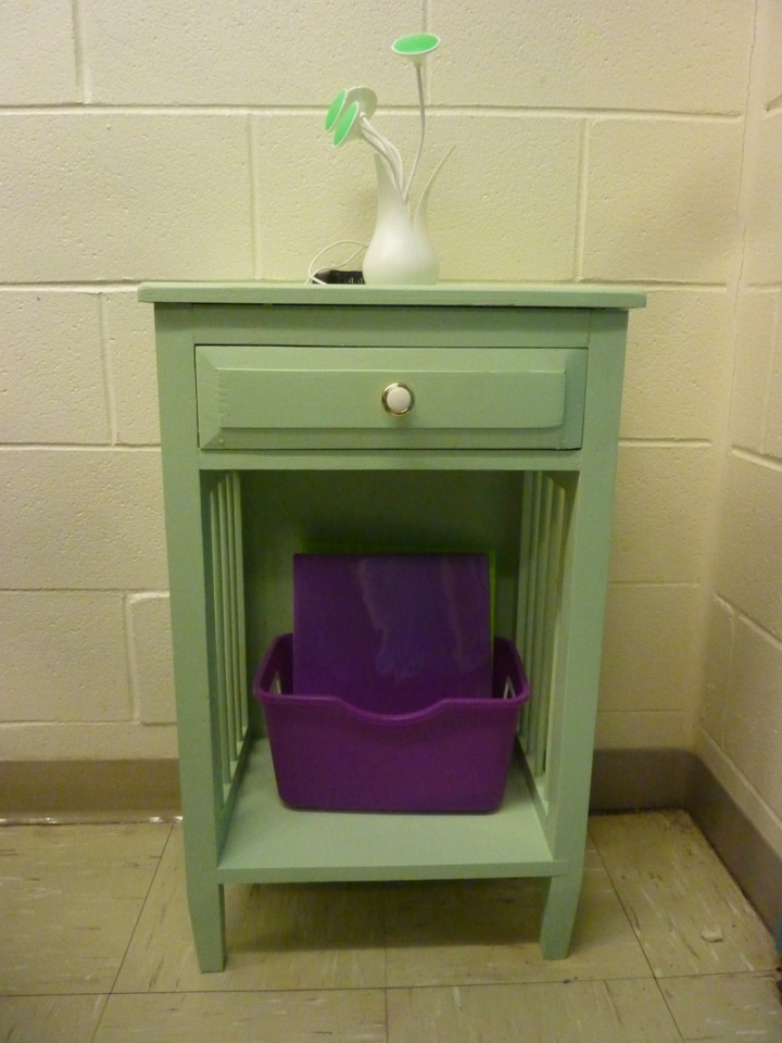 But my wife has an office where she works, cinder block walls, needed some color and some accessories, so I made her these two tables.