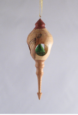 The Christmas Ornament is one I made after they were demonstrated by one of our club members at this month's meeting. It is Redheart, Spalted Oak, and Silky Oak.