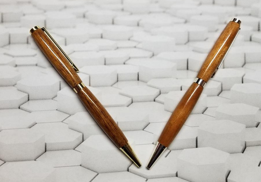 So I posted over the wknd that a lady gave me a box of wood for free. I got her business card and emailed her for her address as I wanted to send her something. So I made these slimlines out of some of the wood she gave me. The darker one is Brazilian Walnut. The other I'm not sure. I know I've turned it before but I forget what it is. I'm thinking maybe Teak? Anyway, I hope she enjoys these when she gets them.