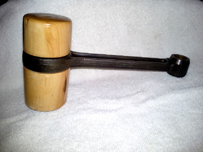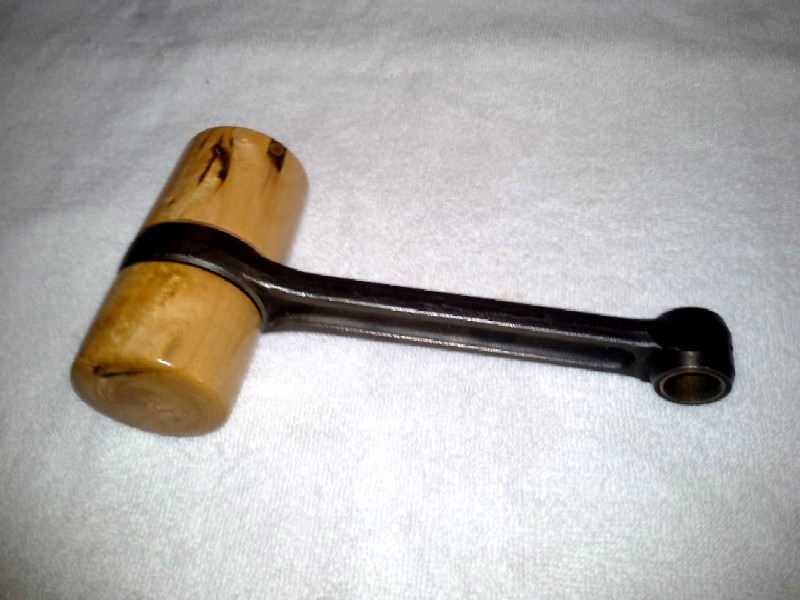 I was asked to make a gavel for the state president of The Widow's Sons Motorcycle Riding Assn. The handle is a connecting rod from a Harley, The wood is a piece of maple from a branch that fell at LeBron James's home here in town.