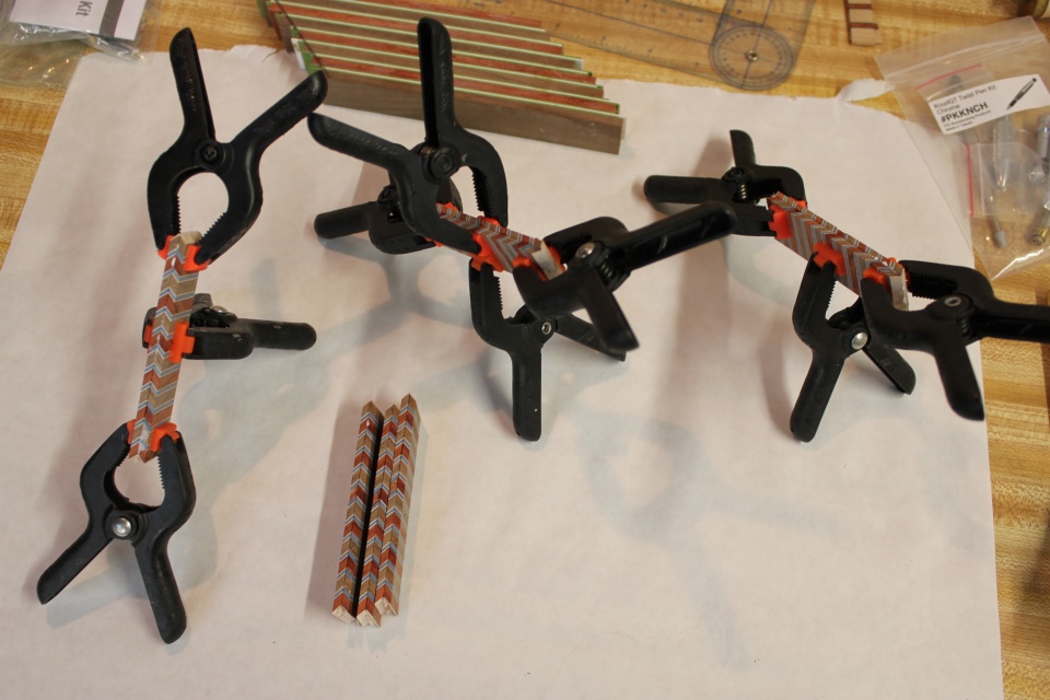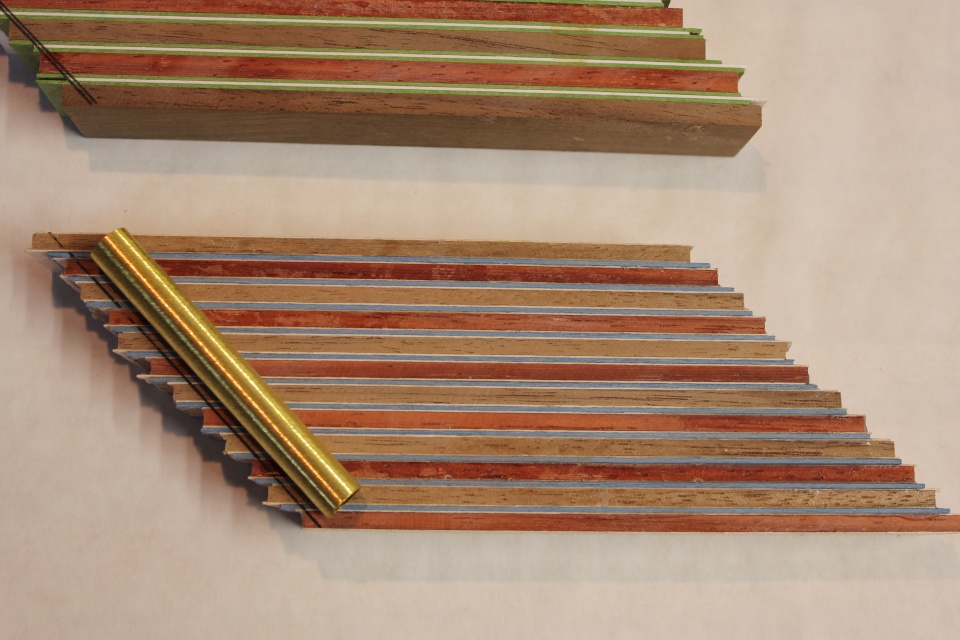 I really need to get back in the shop and work on pens. I do have a method to do this and is alot simplier than what you are attempting but I do like what you are doing. You might be able to fill the voids with clear resin and the pattern will take on even a different look. Especially if you can get the spaces the same size as the staves. I am sorry but did not stop to read the book so if this is what you are going to do then accept my apology. I hate math so I look for trial and error approach:smile: Will be watching.