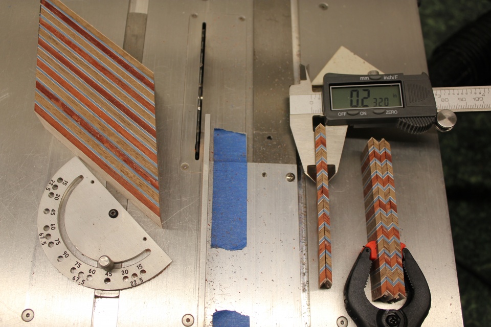 Mark - that is what I've been thinking of doing as well - it's just that some of us still have to work! My attempts to create a blank in that manner were unsuccessful. I could never get them sanded to consistent angles. Your use of jigs certainly helps - I think that a second sanding jig might be necessary to support the chevron after the first angle has been sanded. When I tried it I couldn't keep the chevron from slipping and producing uneven angles.