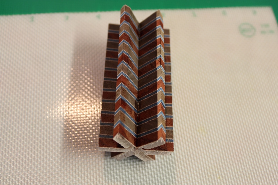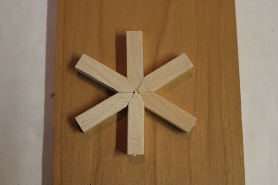 So, I now believed my Chevrons needed to be .18" thick, and sanded to an angle of 45 degrees to construct the "Star Pattern" which hopefully may result in a 360 degree chevron without any "spacers."