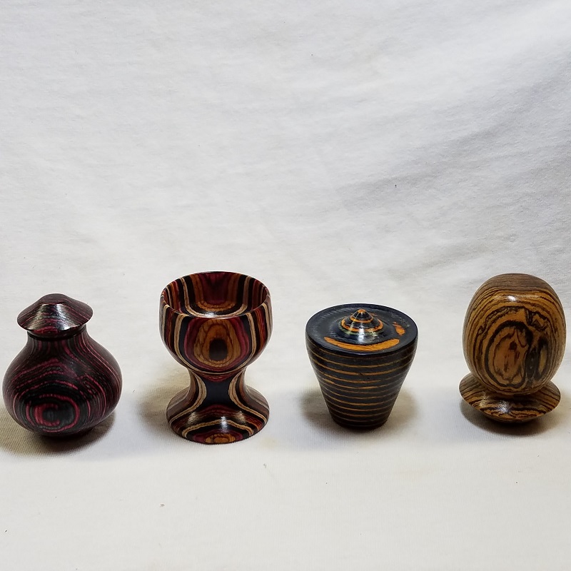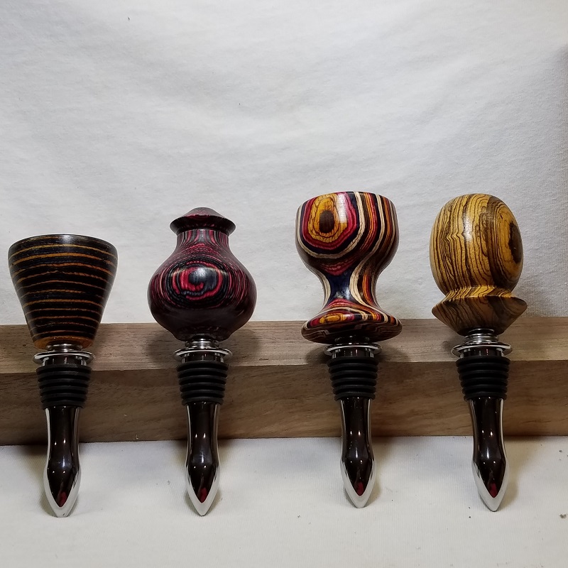 I answered a "Call for Artists" at an art studio that is soft opening this week in my home town. I will be dropping these off and a few other T-handle stoppers and some pens. They will be in a case and for sale. I enjoyed turning these. Bypassed my usual Danish oil/CA finish to use HUT Crystal friction polish.