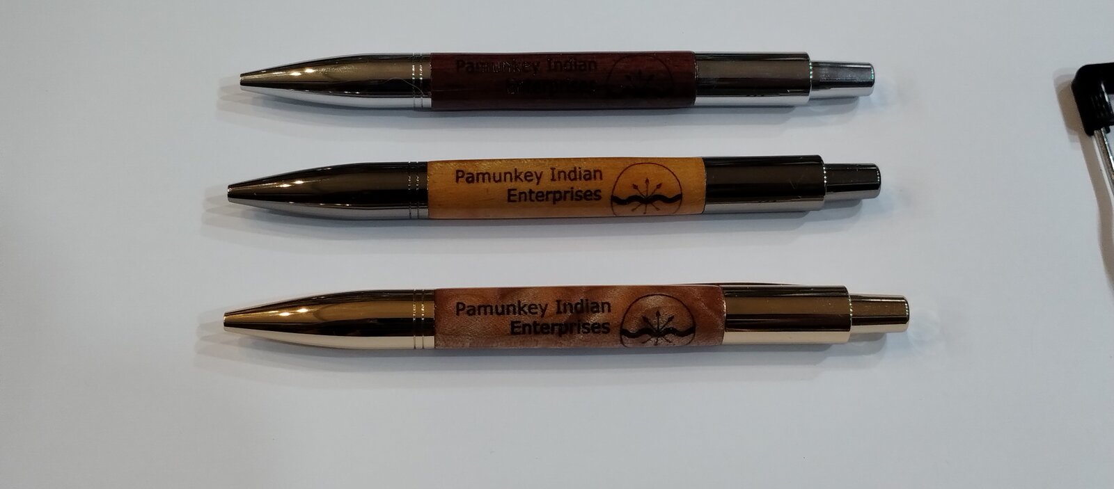 All three are Vesper click pens. The keepers are fiddleback maple and yellowheart.