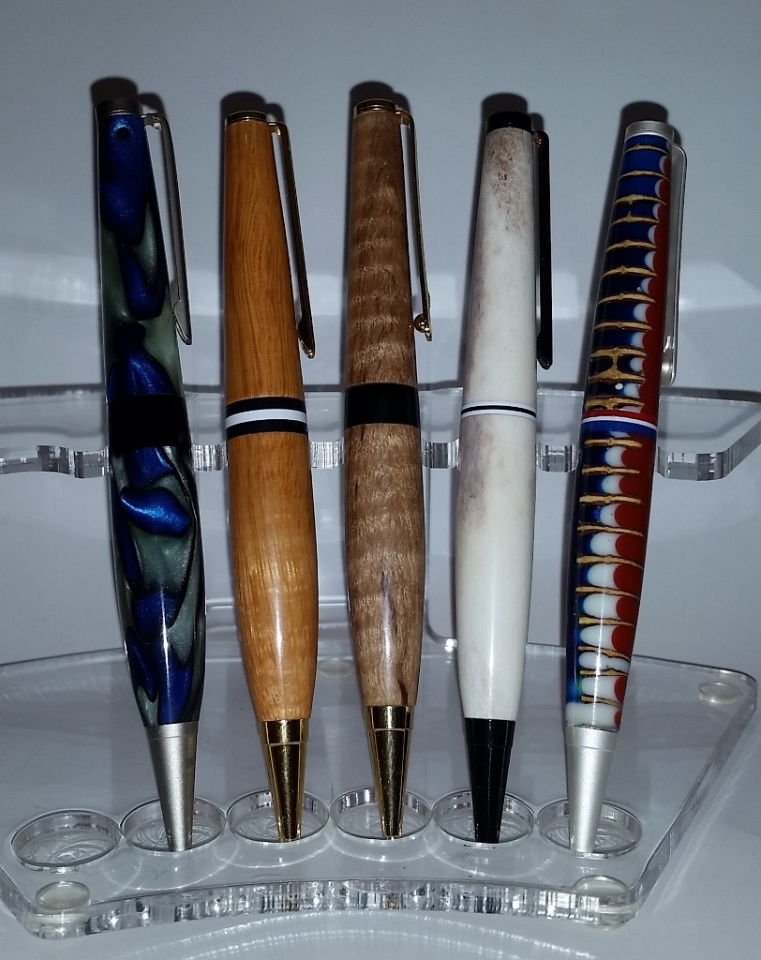 The mystery material pen is one I received from Bob the blank guy. It had a couple of voids and was a pain to finish but I think it turned out great! Love the colors in it.:biggrin: