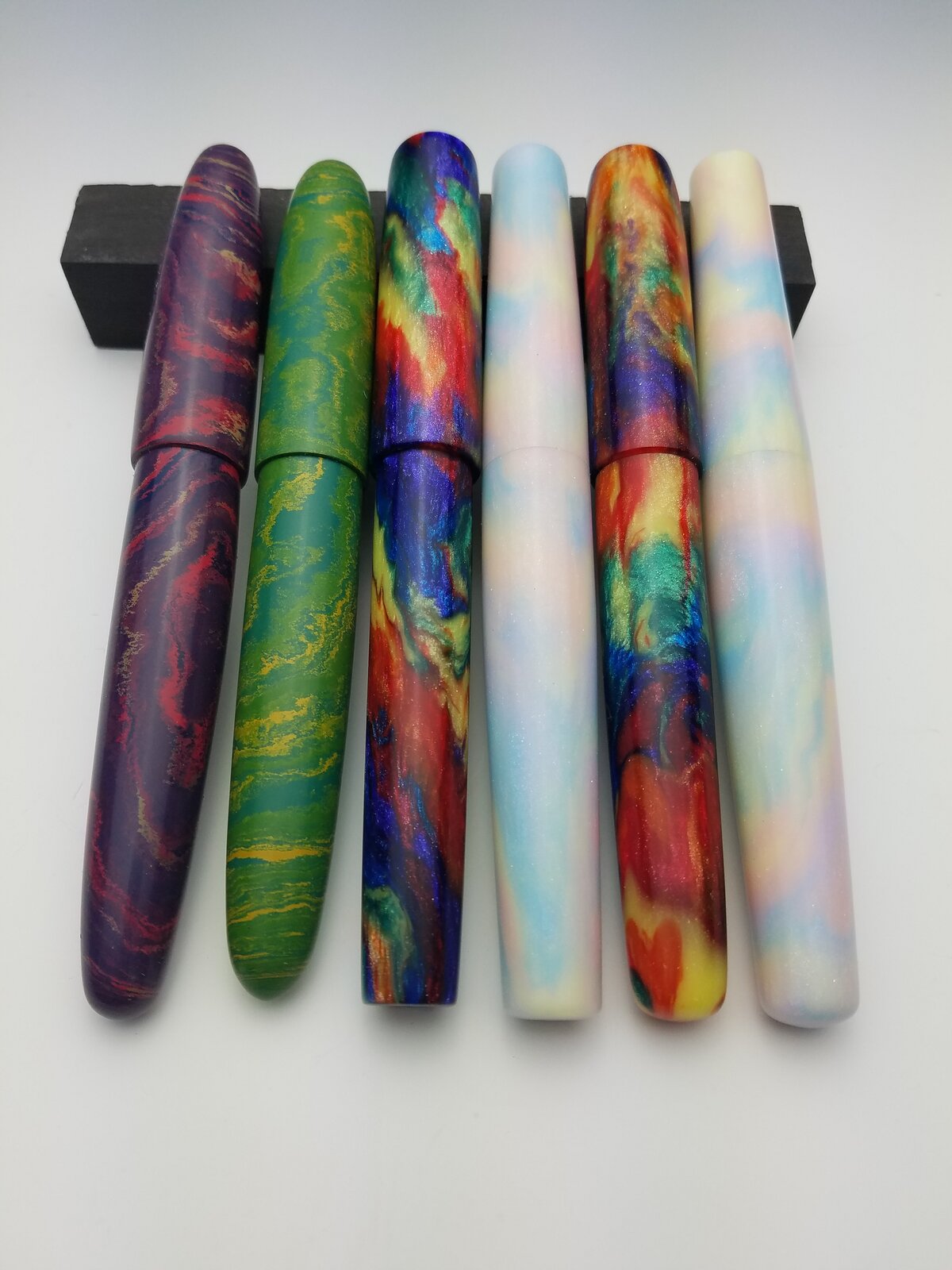 I realize this will be just visual as your work is incredible but the centre coloured dot on the cap of the third one ( great lines and edges on that ) almost looks like a fracture or break point such as you get in green wood turning as you part off. This seems to detract from the impact of the cap for me .