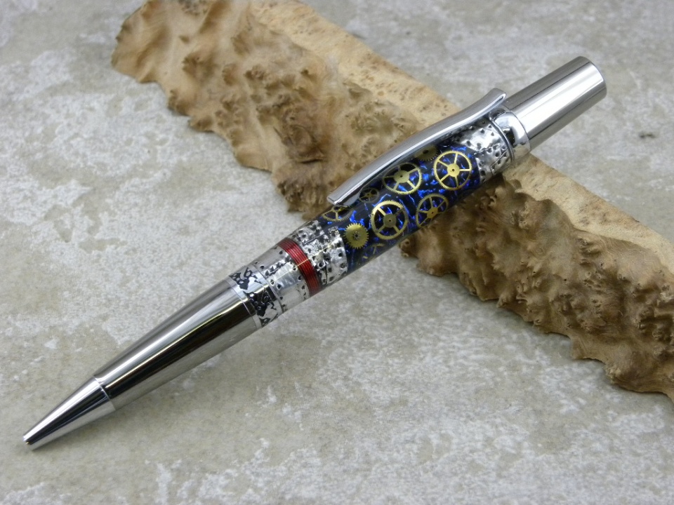 Magnetic Cap pen with Watch Gears and a Jewellery Charm Plate