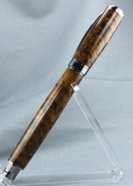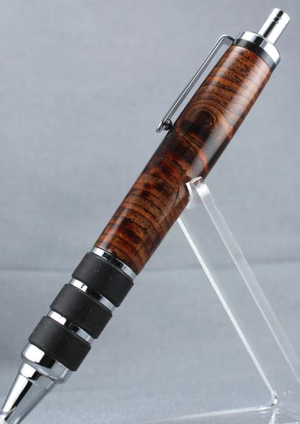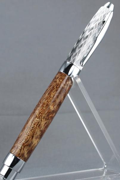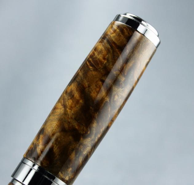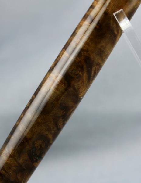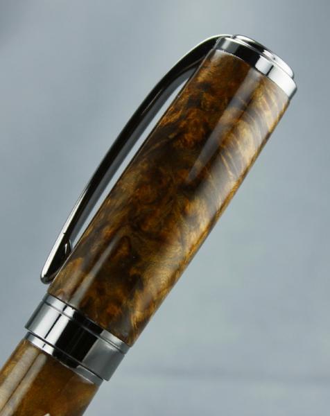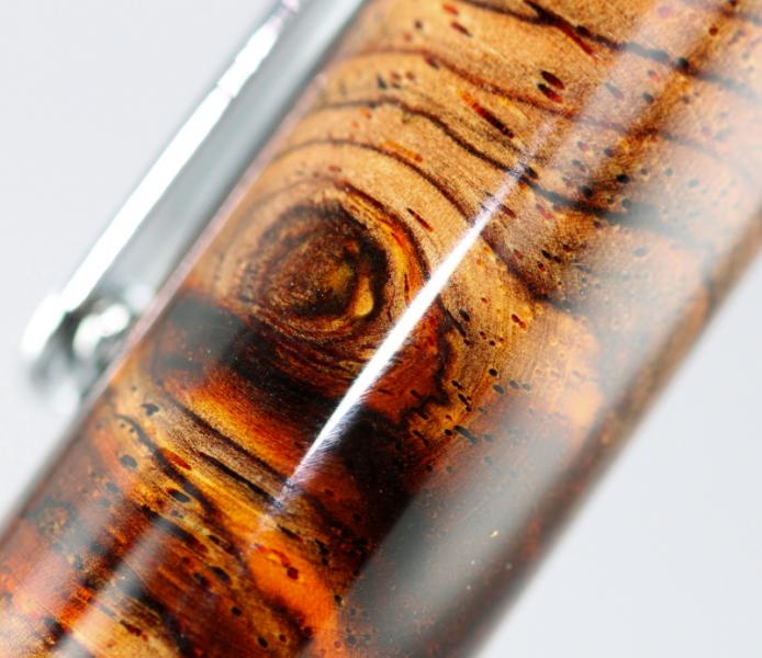 Lastly, Malaysian Blackwood burl on gun metal Graduate rollerball. I bough 4 pieces of this ultra rare burl a year ago and this is the second piece I've made. It is by far the most difficult I've ever worked with! It's full of cracks and holes. All the holes, tiny, have to be filled and then I wet sand with thin CA a couple of times to fill and seal all the checks. CA takes forever as I have to knock it back down to smooth it out. A real pain but stunning.