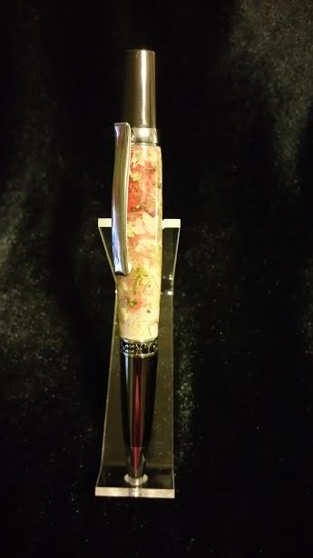 One is a burl majestic junior, the other is a Knight's Armour, (I made it with the colors of the UCF Knights, for my son who was accepted to attend University of Central Florida in the fall), and the last one is a blank made from crushed roses and baby's breath.