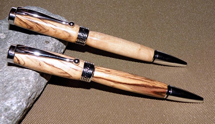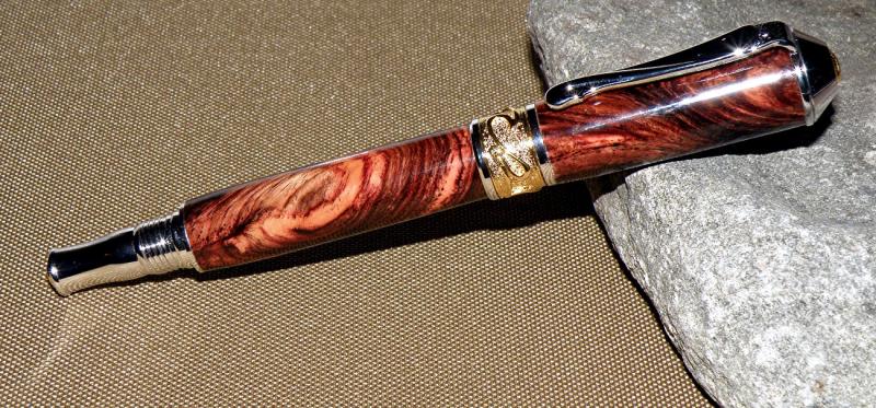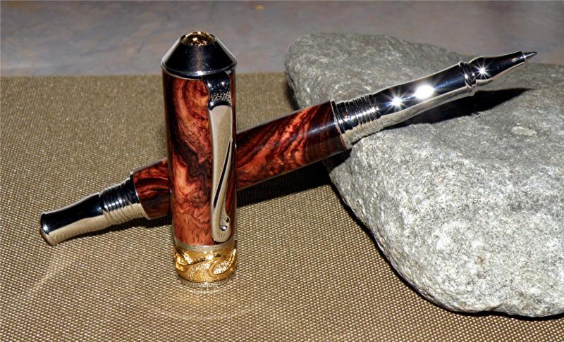 so I said to this lady. "Sure I'd be happy to fix up that pen for you" Next time I will look at the wood. I took her pen apart and found out later it was Wenge. I tried to clean it up and refinish it. White dots all over the place and I found that I was a bit too aggressive in sanding. All said and done, I made her a new pen. Oh and had to buy a B mandrel with bushings as it was a flat top from Berea and learned that I REALLY don't like Wenge! But I will say, I have gained a regular customer out of this learning experience.
