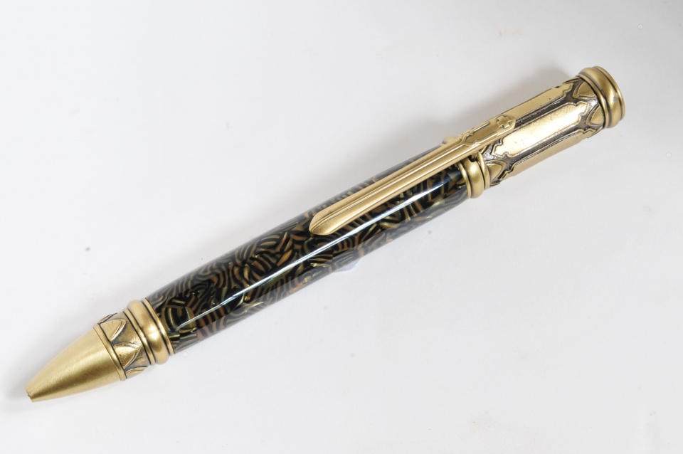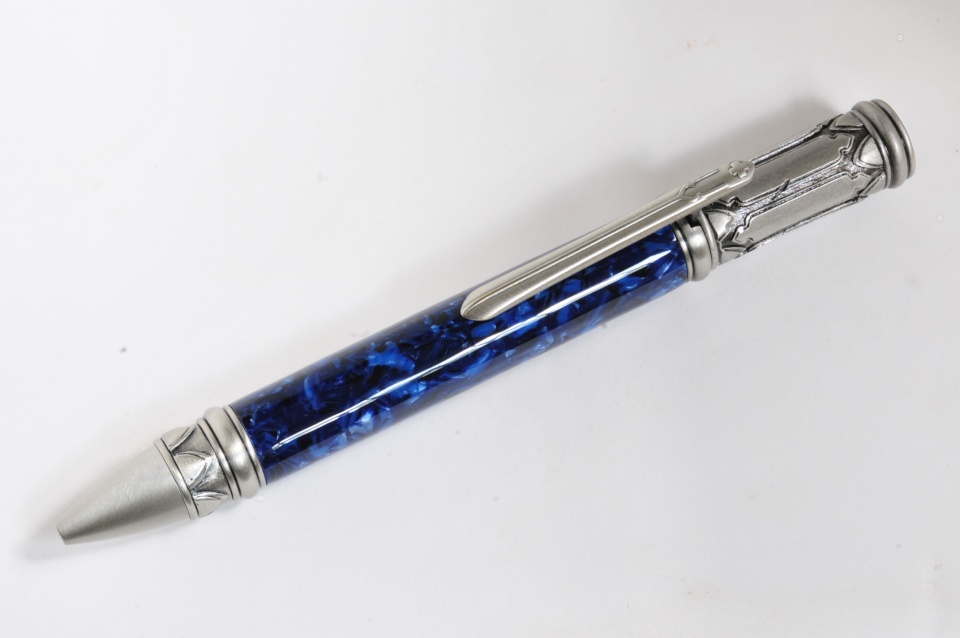 Here are a few Montague ball point pens from PSI I had started some time ago and finished them up last night. Two are in cebloplast and one in an acrylic. These are a heavy pen and leave a lot of material on the tube after turning.