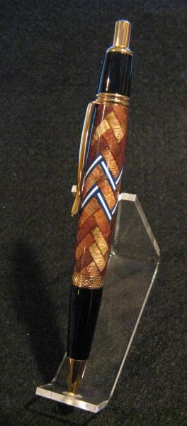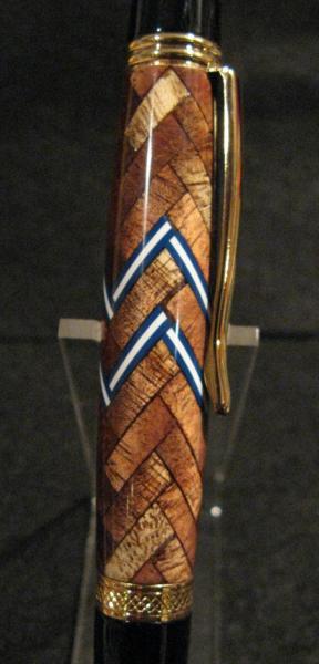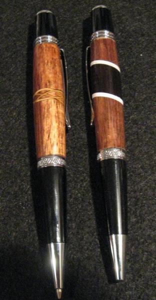 This is a few more of the pens I made for someone, he sent me the wood and I am returning some finished pens to him, I hope he likes them. The first is a Koa herringbone 360 with a bit of pickguard incorporated into it, the kit is a Ti. Gold Sierra click, the next is a platinum Sierra wth a maple celtic knot in the Koa and the final is also a platinum Sierra with Koa and Ebonysegmented with a little white pickguard. All the pens have at least 6 coats of CA and are then micromeshed to 12000 and finished off with some Renwax. I hope these work for you Chris.
