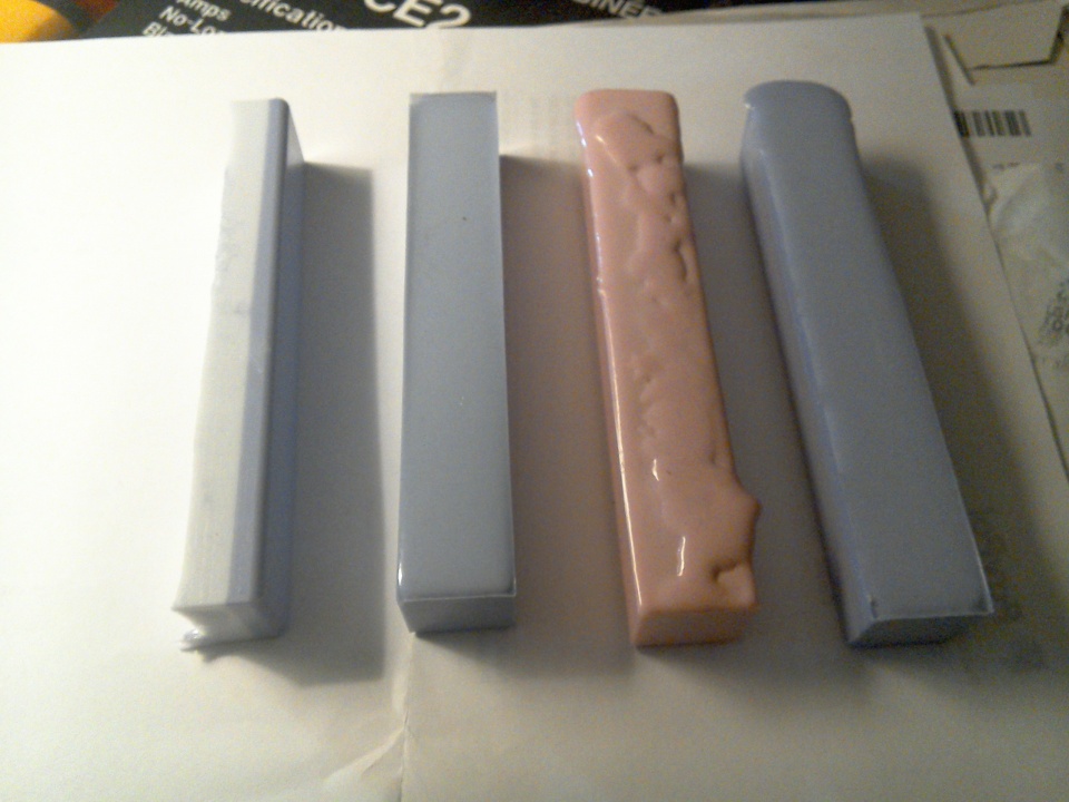 These should be interesting. It was a little bit of alumilite had. I was trying to get some swirls in them. I think if I try some liquid pigment in the mix then it might work out. The one on the left is a two color one made with what was left in both cups. I poured one over the other one. Fay