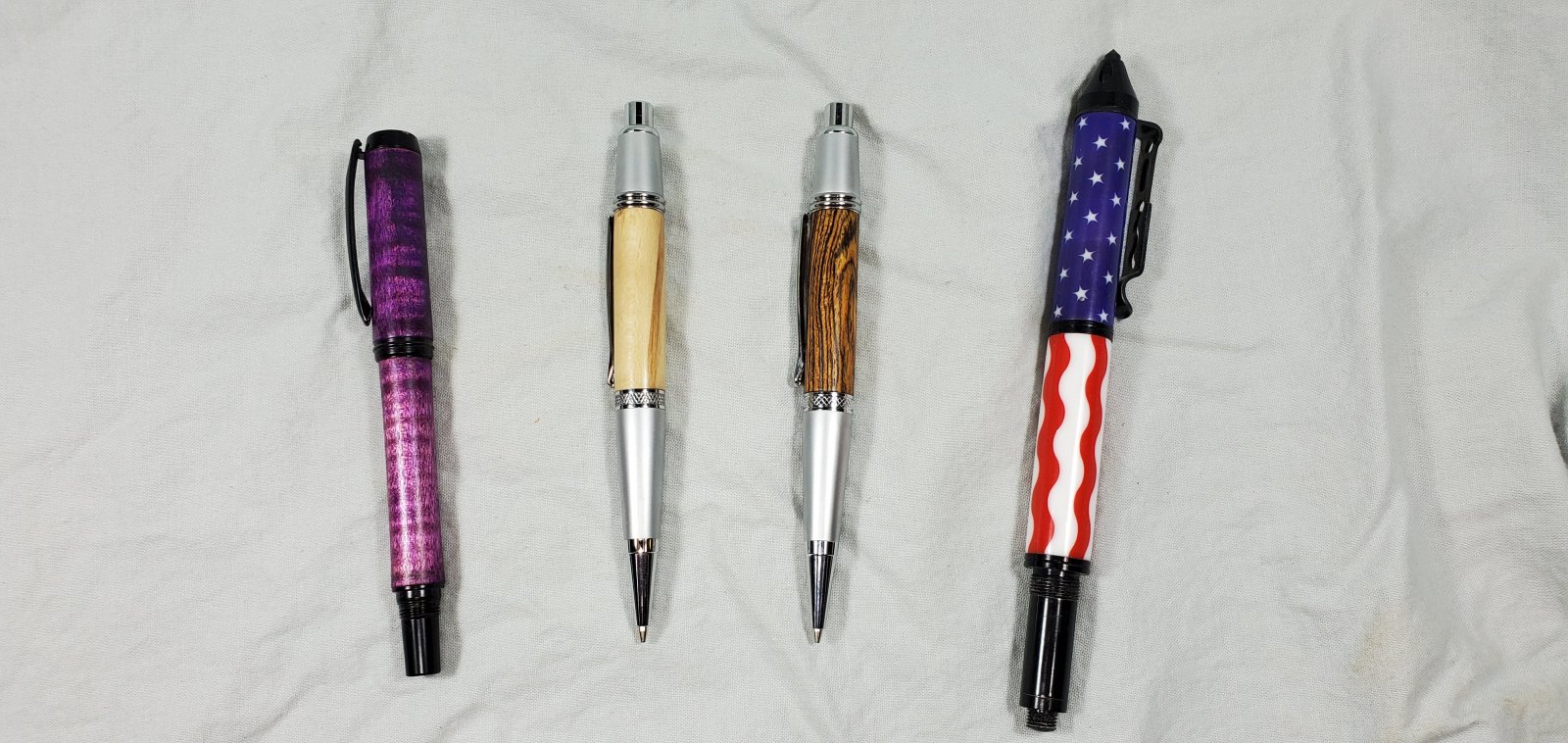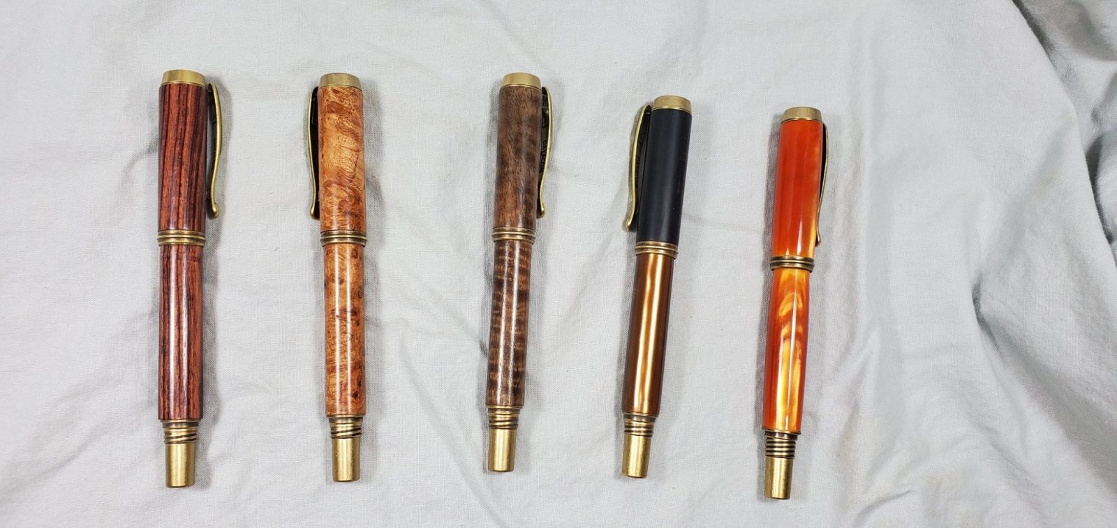 5 Jr. Georges, Antique Bronze from DavidD in Koa, Cherry burl from woodblankguy76, Curly walnut, Metallic bronze from EB & Jet-Phen from guitarpartsandmore.com, and Madrepearlato/Caramello also from EB.