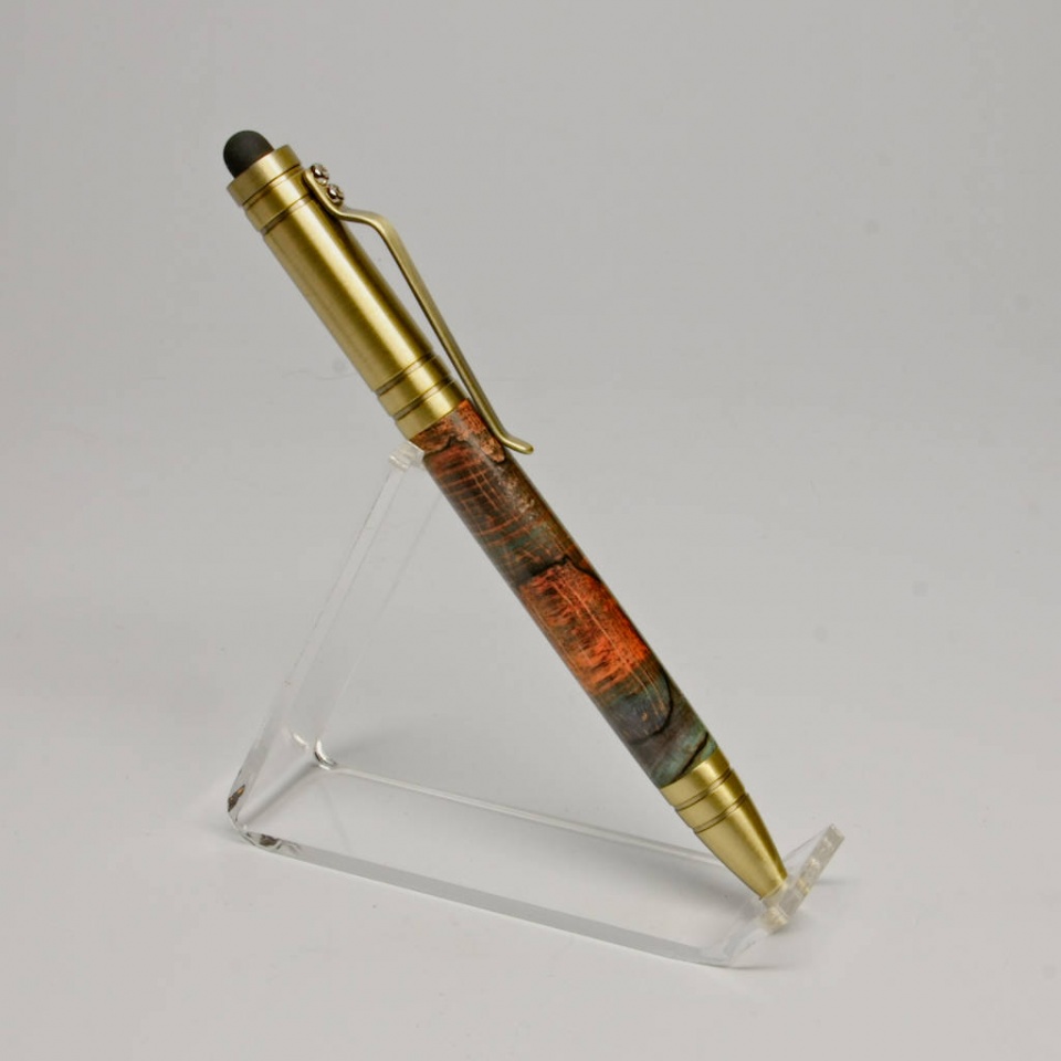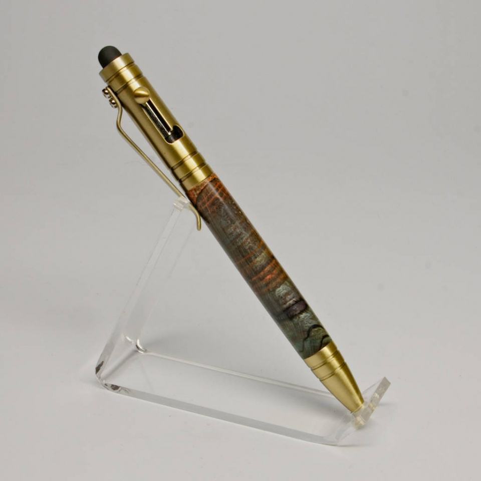 The Tec pen is either a double or a triple dye spalted hickory. This was finished with just a few coast of pens plus friction finish.