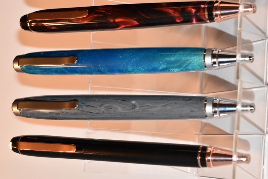 JUICEDSS Member Joined Mar 5, 2018 Messages 227 Location Grand Island, NY Apr 26, 2019 #1 I tried my hand at the one piece mod to the cigar pens. From left to right, black phenolic, swirled slate acrylic, Caribbean Waters Rhino Plastic and Molten Copper Swirl Rhino. Attachments DSC_0215.JPG 70.8 KB · Views: 425