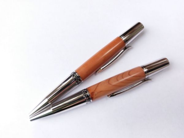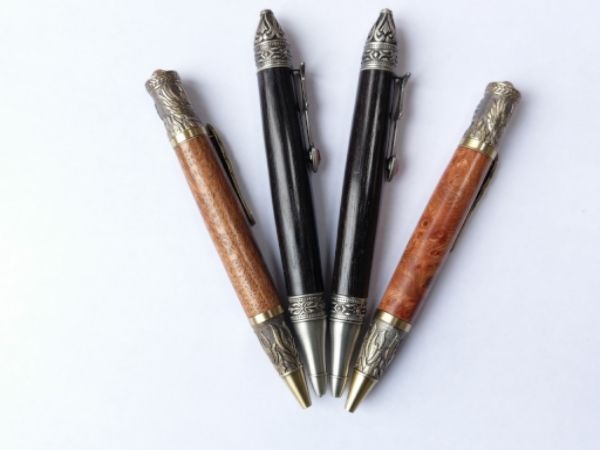A few pens made for a mate as presents. L-R PSI Phoenix with 900yr old Brown oak, 2 PSO Gothicas with Bog oak and a PSI Phoenix again with Burr Elm
