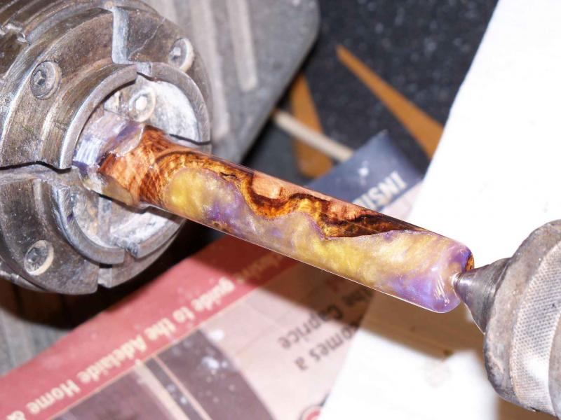 I did also, play with some of the smaller new Banksia pods, and made half a dozen of BT blanks. I finished one today to see how it would look on the kits I have but, the resin is still bleeding too much from the inside of the blanks, when the outer clear layer of resin is cut out, so I will re-do it again next week or so and take better pics of it...!