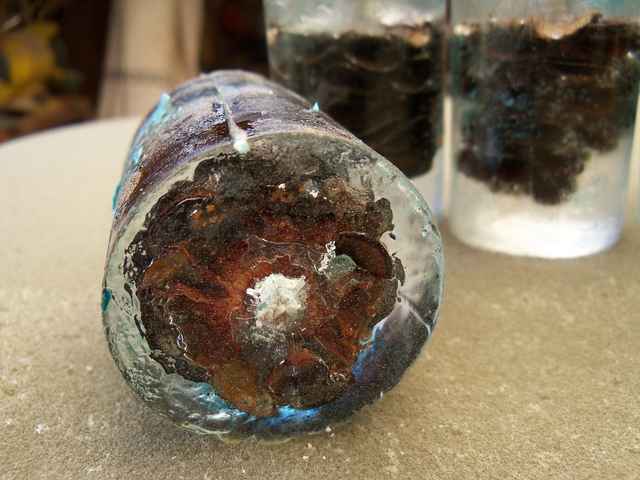 The next morning I got the molds out of the pod and put them outside to day a little, they appeared to be hard, one I couldn't see any signs of the pearl white and the other one was totally brown on the top surface...!:eek: