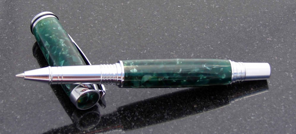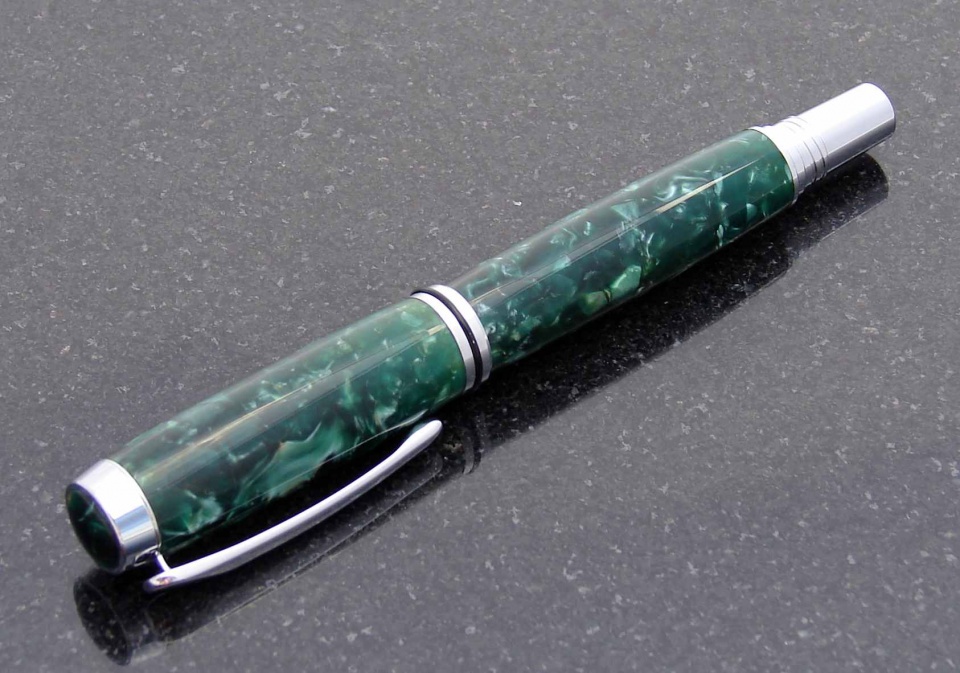 The second is a Jr Gent, in chrome. The body is Green Duofold Acrylic, there is a custom finial on this, a first for me.