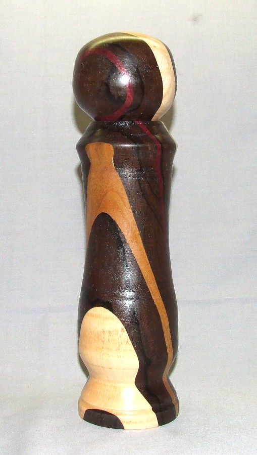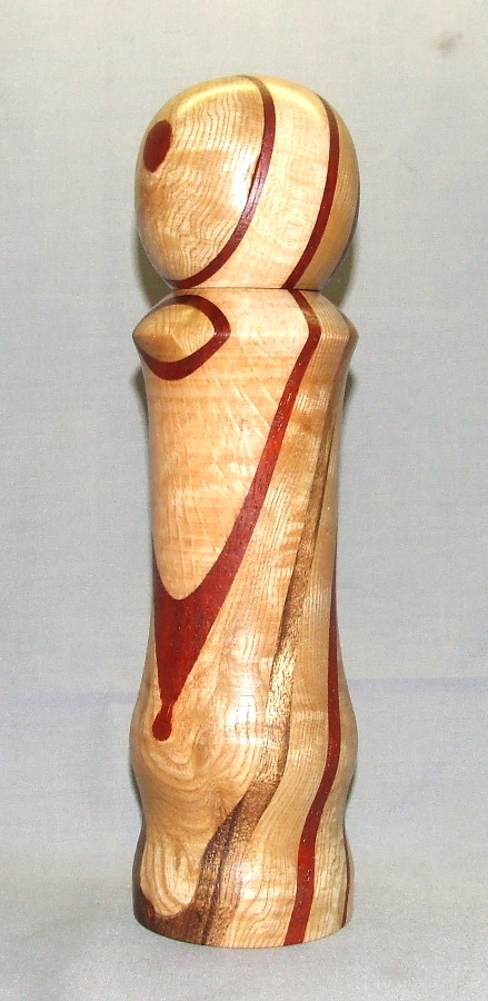 The pepper mills are both 10 1/4" tall, glue ups that I put together, mostly so I could play with my new joiner... First is Ash, Paduak with a stripe of caribbean rosewood for accent... second is maple, brazilian ebony with Mulberry and Purple heart accents.