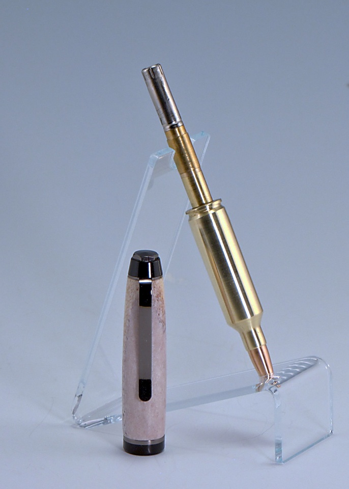 Not my first bullet pen, I have made several 3006s, 308s, 8mm, 7mmMag, and one or two Weatherby 300mags but this is a first for the 270 Winchester cartridge, although it does assembly very similar to the 308 except for the slug size. I Had to bushing up a 7mm tube to 8mm inside the case but otherwise similar to the 308. This was a cartridge supplied by a customer.