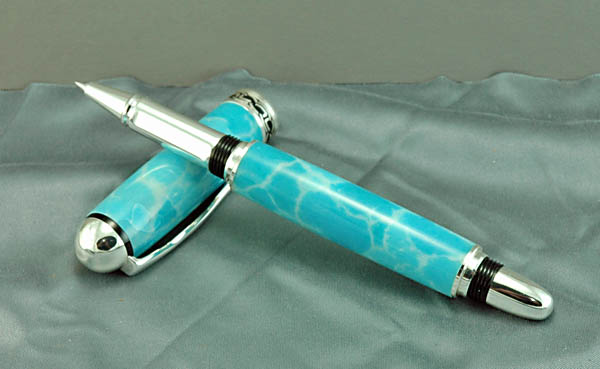 This Larimar Tru-Stone blank was included in an order of Tru-Stone blanks from R and B Crafts, thank you Richard. I mated it with a Sterling Silver Sedona and am pleased with the results.
