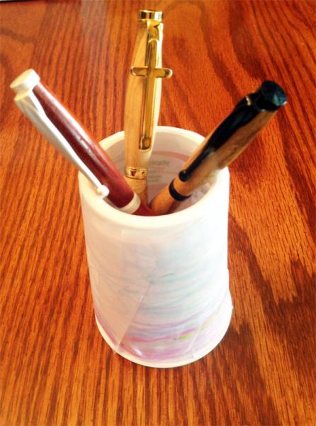 Our 5-year old granddaughter has been spending a few days with us this week. When I got home from work yesterday, she gave me this little pen holder that she made. How cool is that?