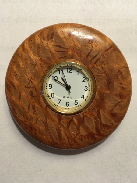 For a special occasion. Watch face and bezel total about 7/8 of an inch in diameter and the overall diameter is about 2 1/8 inches with a lasered message on the reverse side. Can be hung on a wall or carried in her purse. SAYS SHE LIKES IT!!