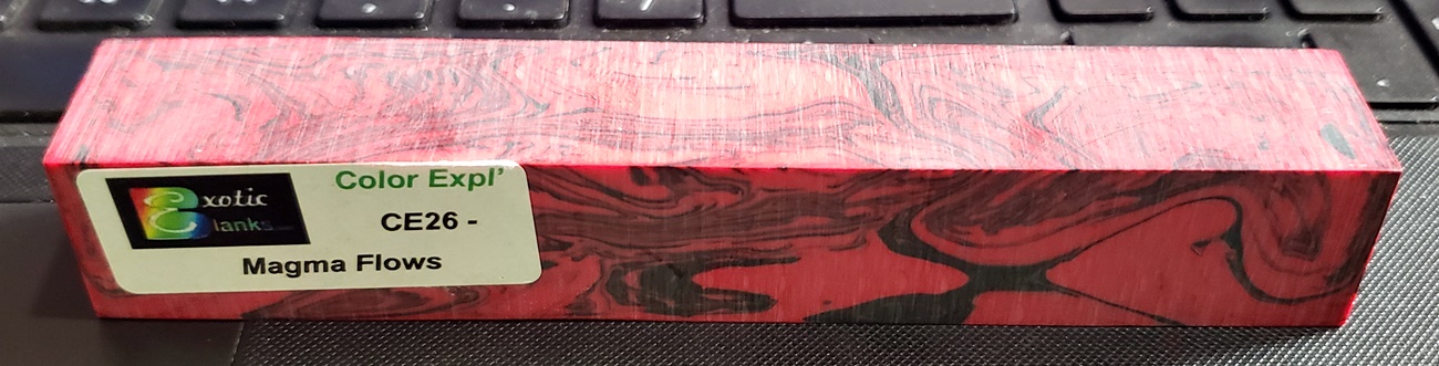 I do know what it is not - not PR (doesn't have that usual PR odor); not Alumilite (no fancy ribbons flying around); not Acrylic Acetate or Inlace (does not chip out). Whatever! It is still good looking and was easy to turn.