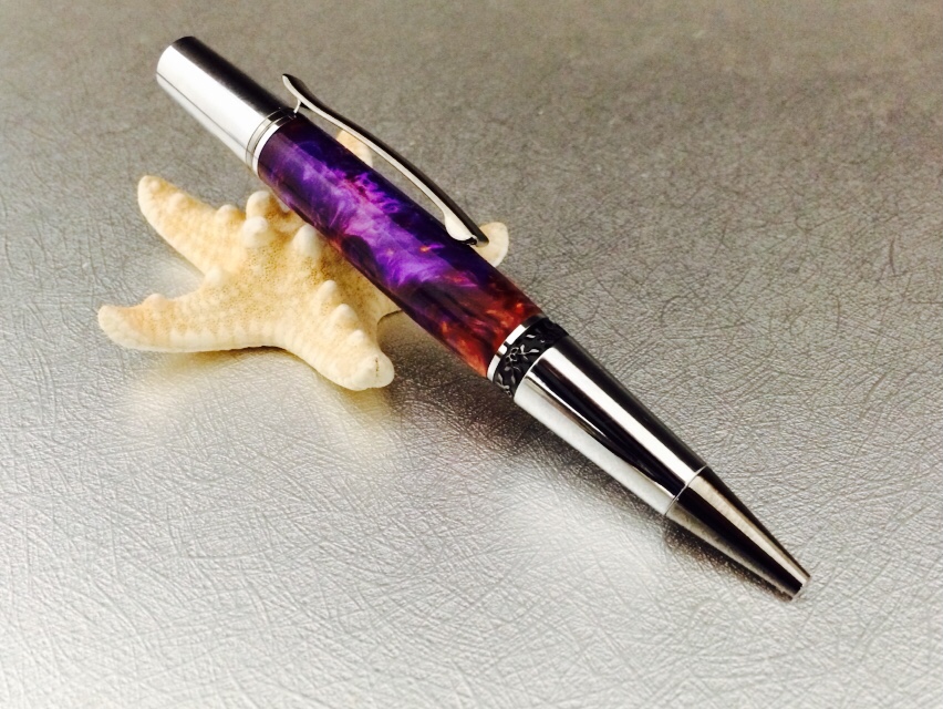 First one is a Lavender Matrix blank and I painted the tube black. It gives it some interesting highlights. The second is a burgundy Madrepearlato. This is - I don't know:smile:. I had this left over in my bin and it reminded me of a volcano, but don't know where I got it from. The last is Seminole Wind. Whenever I see this blank it reminds me of John Anderson's song "Seminole Winds" and I think it goes well with the song.