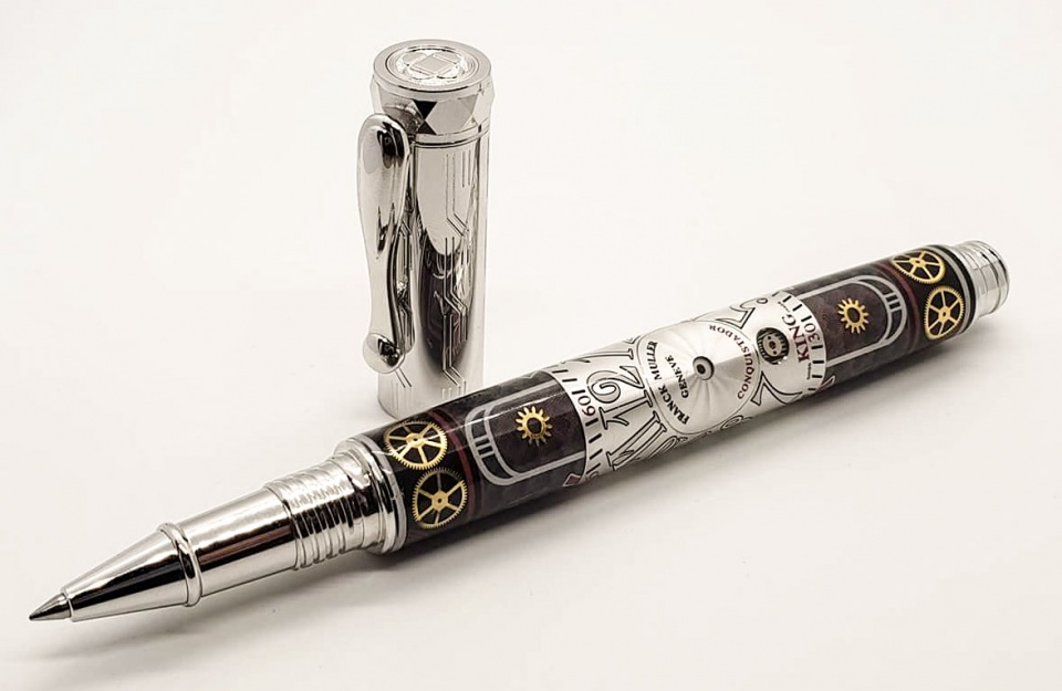 Awesome job......I had a rich friend buy a watch from Frank Mueller ( the company that made the watch Face). My friend commissioned a watch and they presented it in Monte Carlo. My friend footed the bill to take us there, so I made about 10 various Nouveau pens, and he gave them as gifts to them.
