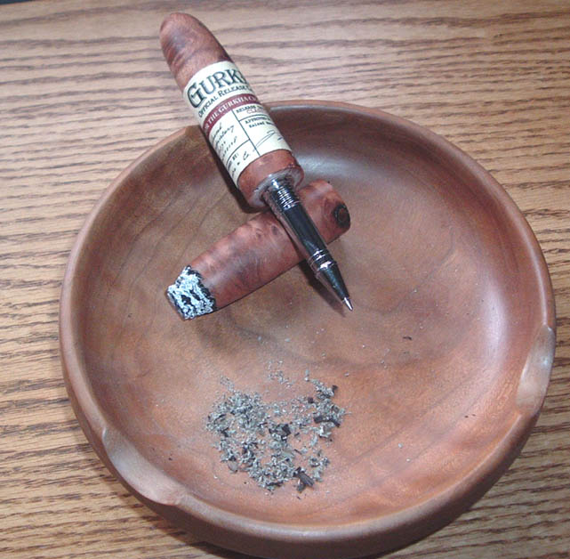 Kenny, I use unstabilized buckeye burl for the ash end and what looks like ashes are some of the shavings from the lathe.