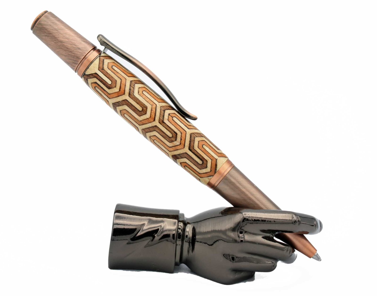 I found this blank as I was tidying up my bench. I love finding things I forgot I had. So the bench is still pretty messy but I have a pen! This is one of Ken Wines' blanks on an Antique Copper Sirocco. It has a GluBoost finish.