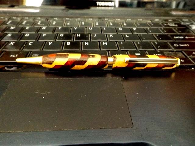 Not too bad of a pen if I say so, but when it was made they did not get the wood even so the colors line up but it is an interesting looking pen. I like it and it's the first one of this kind I have done.. Enjoy Fay Oh yes, you really have to be careful with laminates because they do chip easy and you can get a nasty catch which I did but was able to fix that.