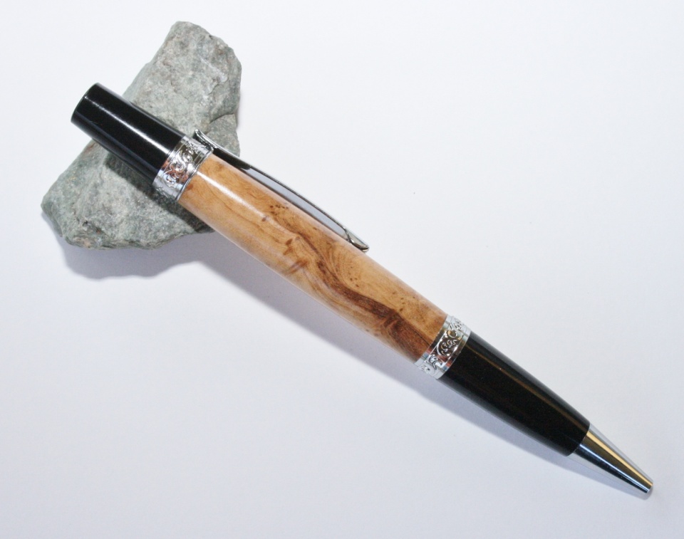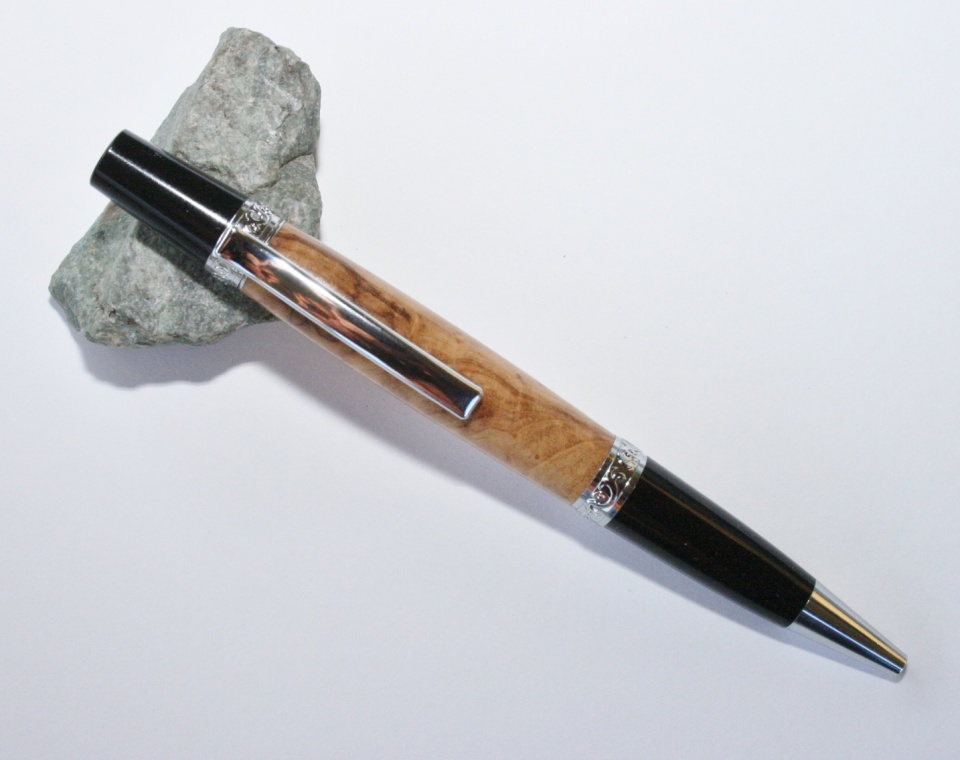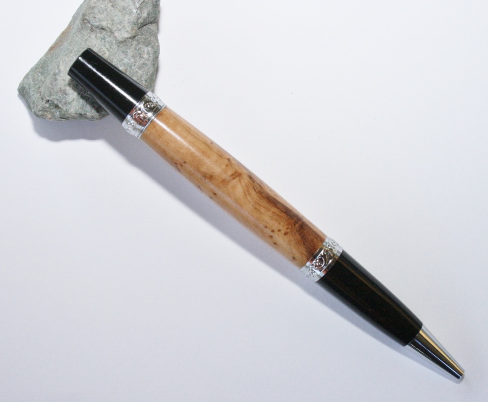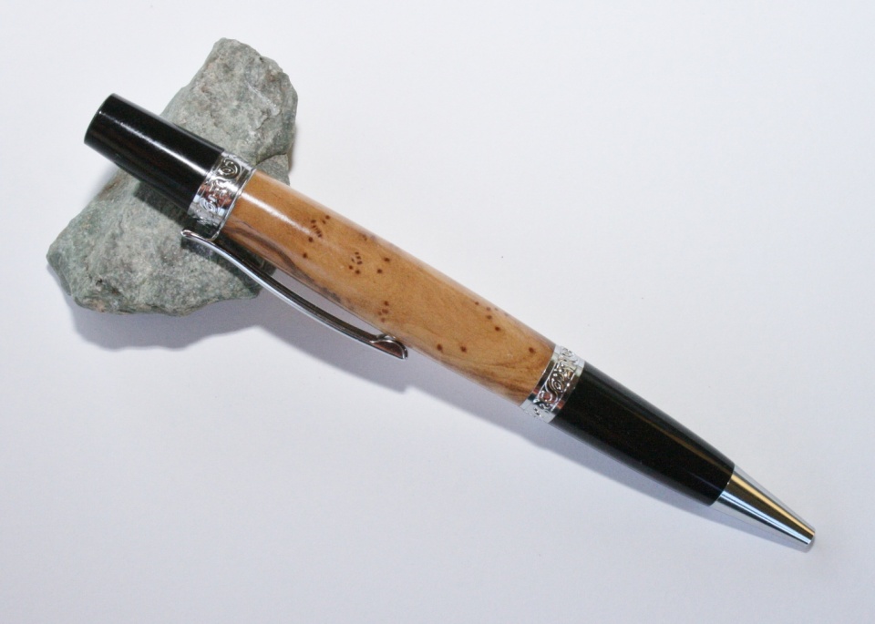 There was a first on this pen. It's the first pen out of my shop using just a gouge. A member here sent it to me it did a really nice job. The kit is a black and chrome LE ROI ELEGANT. I not sure what the blank is other then a type of burl. I blank was sent to me by another member it had COB or something like that on the end. I sanded the blank to 12000 mm and finished with my WTF method. All C & C are welcome