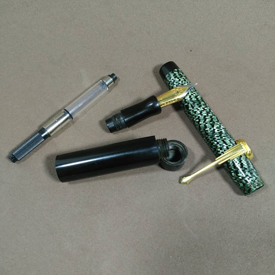 Some vintage spiral wrapped celluloid paired with black ebonite trim.