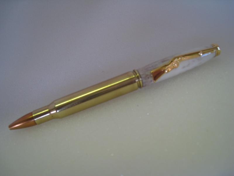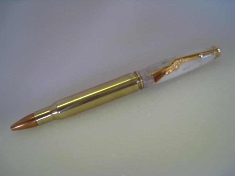 The second pen is a 30-06 kit from Sylvanite here at IAP sporting Elk antler from Gofer (Bruce) whom I still owe a few goodies to. The antler has 6 coats of CA, MM to 12000 and Novus 2 polish. I made three of these, but figured if you saw one, you seen them all.
