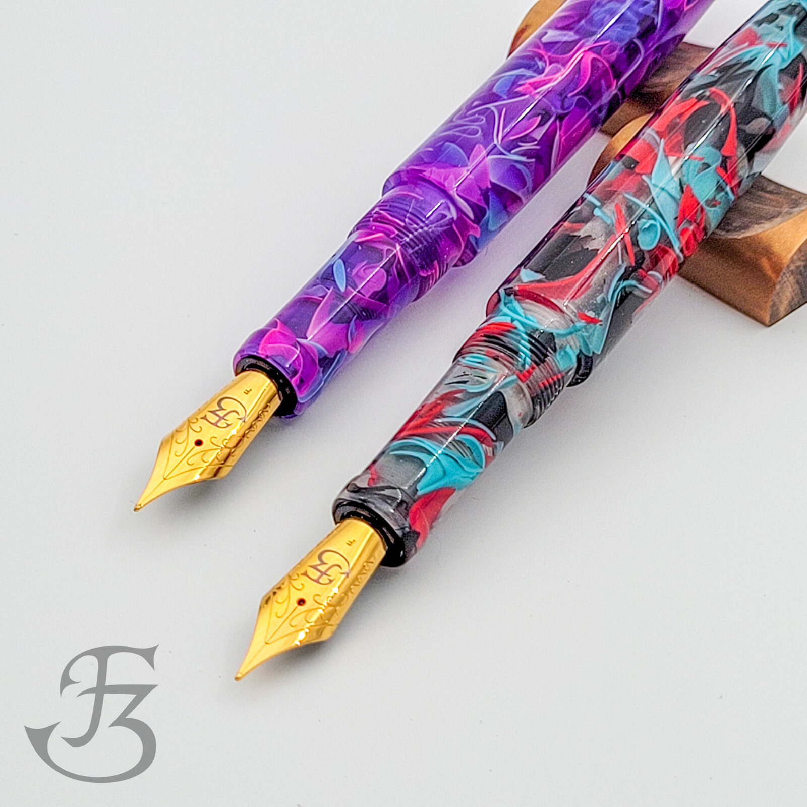 A pair of my Model 3 pens in some Mutt Blanks ribbon material.