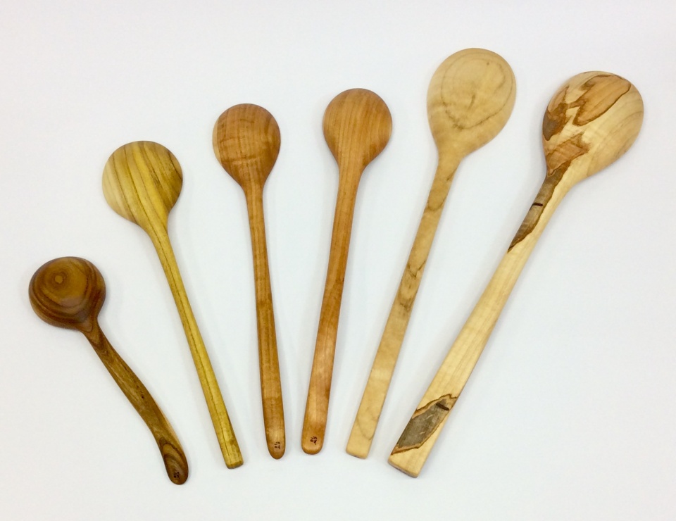 Left to right: Redbud, Mulberry, Cherry, Cherry, Maple, Ambrosia Maple