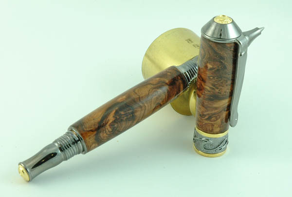 Here is a Black T/N & Gold Rollerball done up in Hondran Rosewood Burl. The finish is BLO/CA. The more of these kits I make the better I like them.