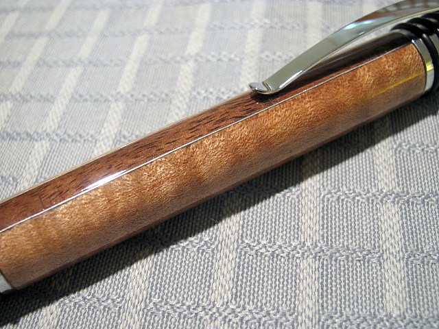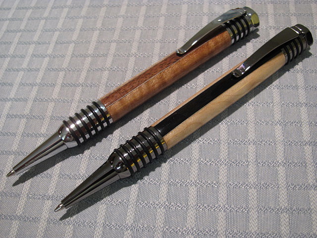 Those pens are fabulous. Wow really like the way you have combined the timbers and the aluminium inbetween is great. I like the idea of the o rings. The the fiddleback on the timber is great too