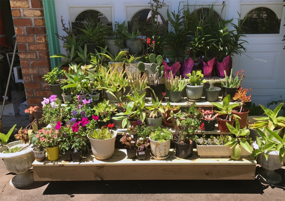 It's just a simple little project, but my wife has a lot of potted plants, so I built this stand for her yesterday.
