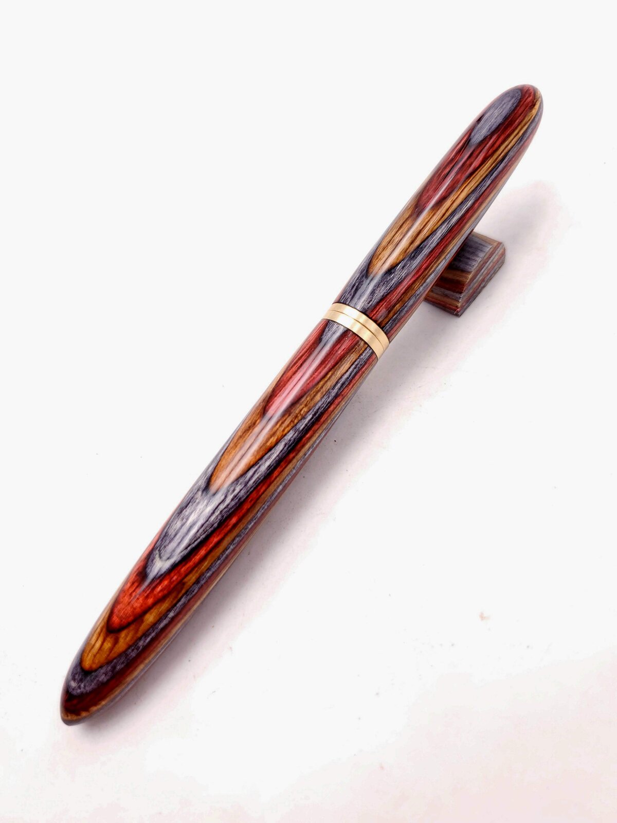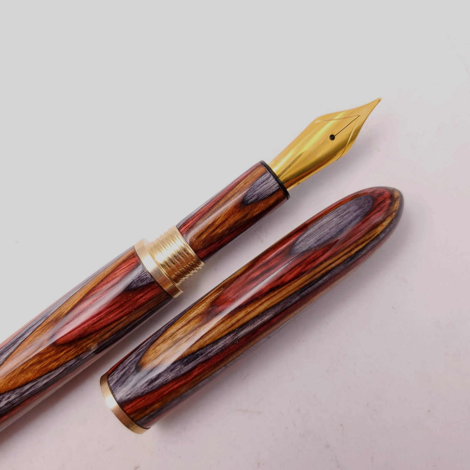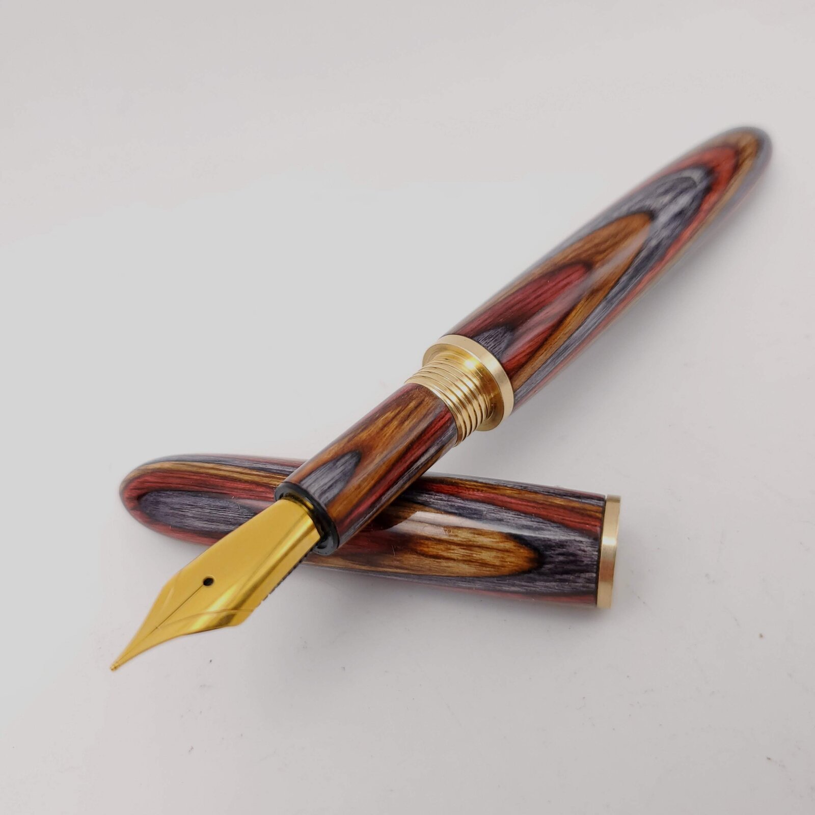 I made a custom fountain pen with some Royal Jacaranda spectraply. I modified some of the parts of the RAW kit for the threads since I haven't gotten into threading yet. Making the section was a challenge and figuring out how to convert it to a #6 nib instead of a #5 nib took some creative drilling techniques, but I'm happy with how it turned out.