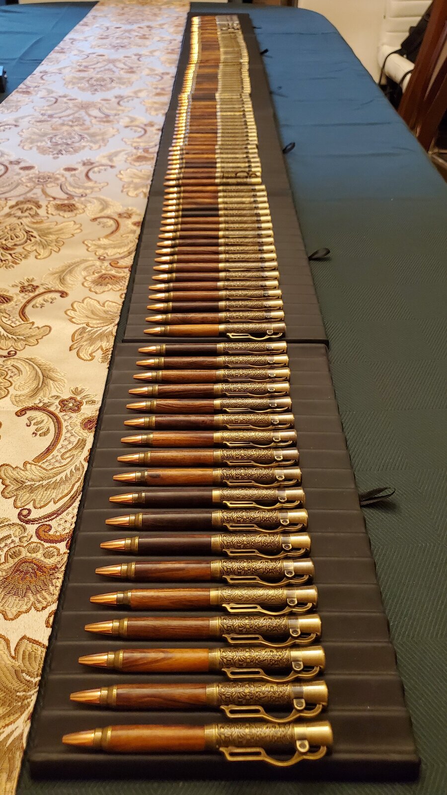 And then there's a bunch of ironwood lever action pens I recently made to fill some orders. I needed 105 for the orders, I started with 108, and ended up with 104 because a few broke along the way. So now I'm one short and have to go make another one