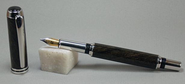 Øistein sent me some 5000 yr old bog oak and some nice teak from the deck of a Norwegian sailing ship the Statsraad Lehmkuhl. I made a Baron in each, the bog oak is a platinum kit I've had for a while and the teak is in black titanium. Which one do I send her.